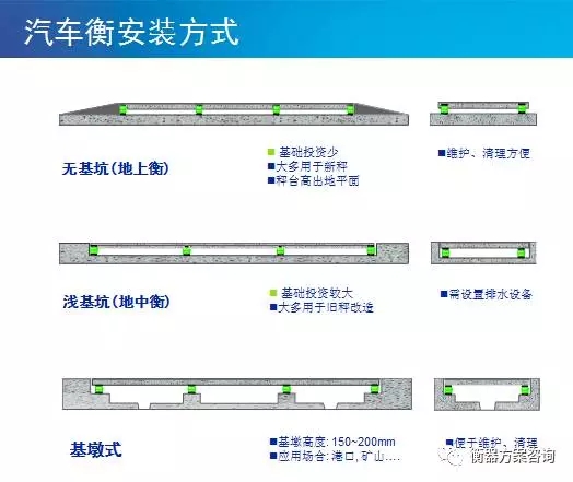 電子汽車(chē)衡的基坑形式一般有三種,分別是無(wú)基坑,淺基坑和基墩式。