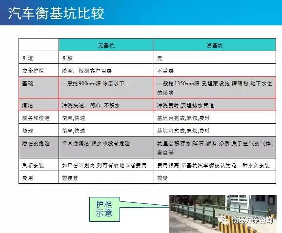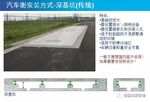 無(wú)基坑注意事項(xiàng):需要澆筑混凝土引坡,車(chē)輛上衡相對(duì)較難.必要時(shí)需要配套安全護(hù)欄。出于安全考慮,一般無(wú)基坑的汽車(chē)衡安裝高度控制在0.5m左右。